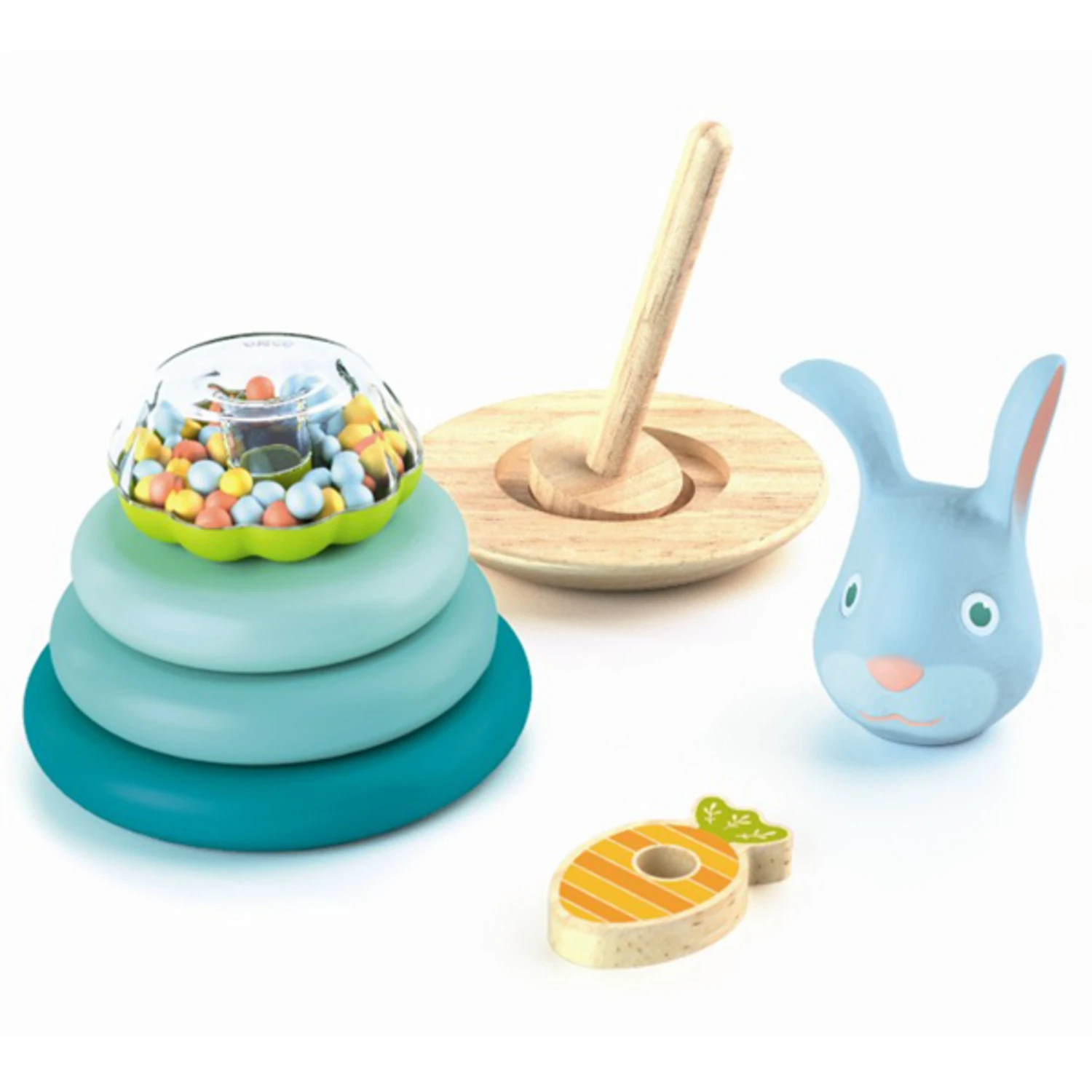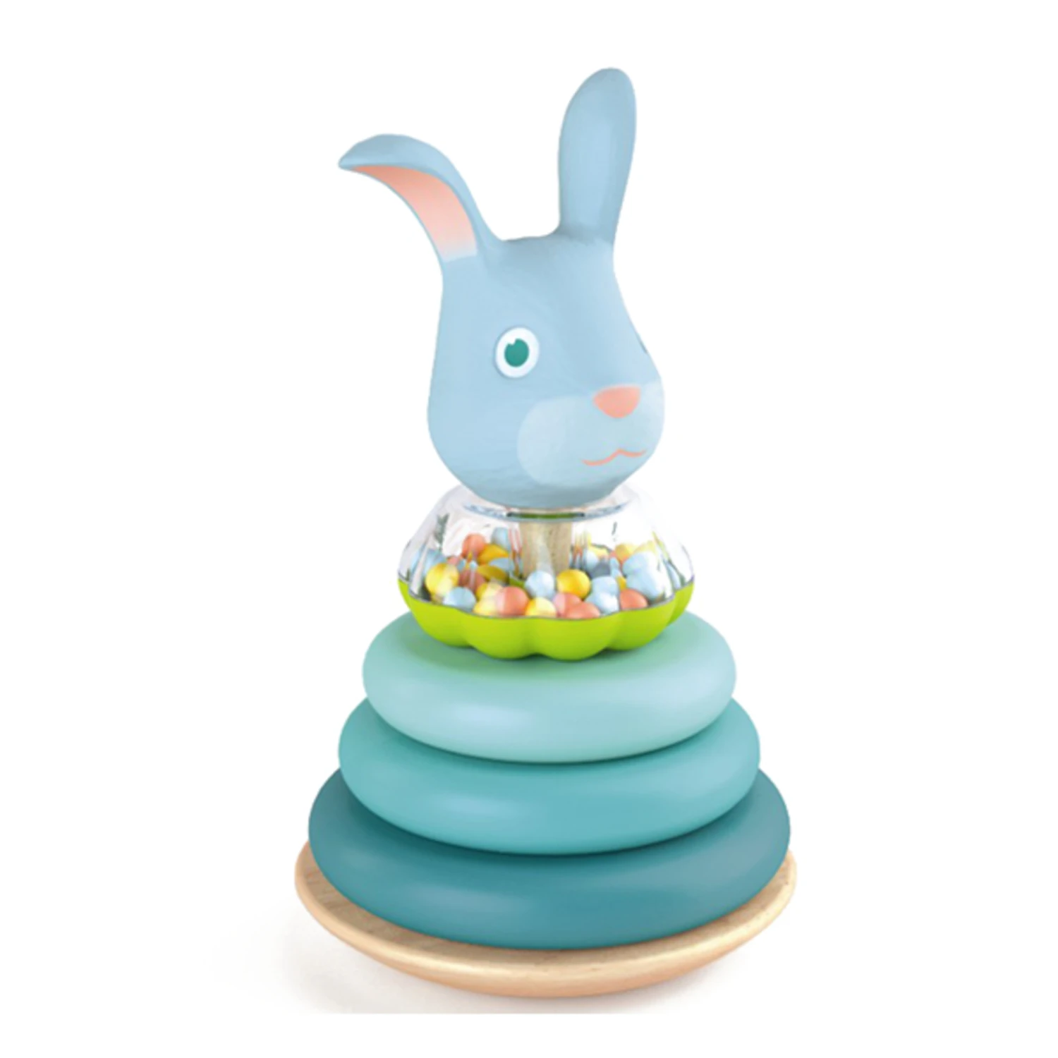 Cascarott est un jeu d’empilage ludique et original fabriqué en bois et en plastique, idéal pour développer la dextérité et motricité des tout petits ! Aux couleurs tendres, ce petit lapin est un merveilleux jouet d’éveil à billes pour les bébés dès 12 mois. Ce jeu d’empilage se compose de 4 anneaux, d’une tête de lapin et d’une carotte.