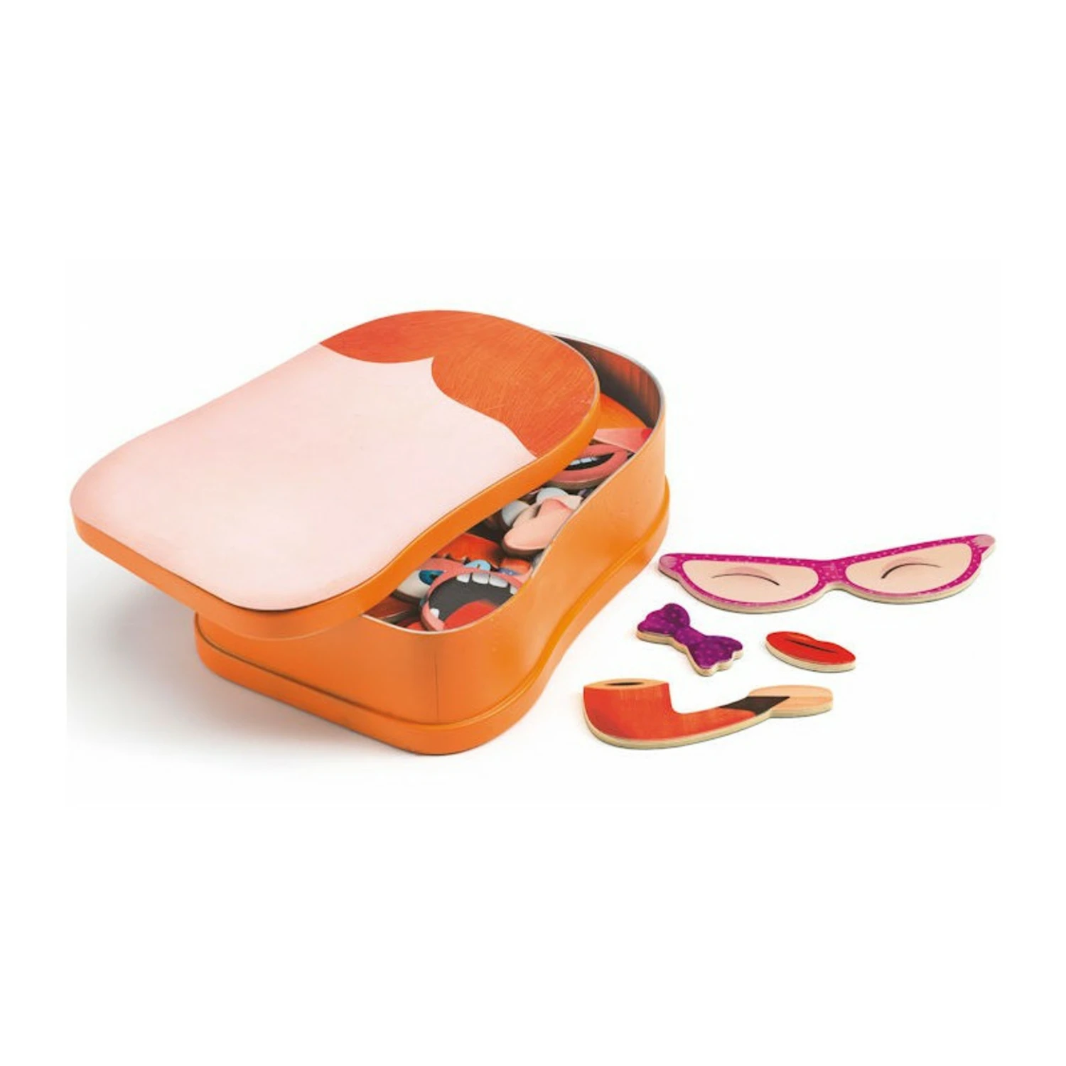 Découvrez la boîte métallique Portraito de la marque , un jeu éducatif original avec des magnets en bois qui permettra à votre enfant de créer toutes sortes de visages, réalistes ou imaginaires ! Un jeu ludique pour les enfants à partir de 3 ans, qui pourront multiplier les combinaisons grâce aux 2 côtés de ma boîte : un côté masculin et un côté féminin. Le jeu contient 38 pièces en bois.