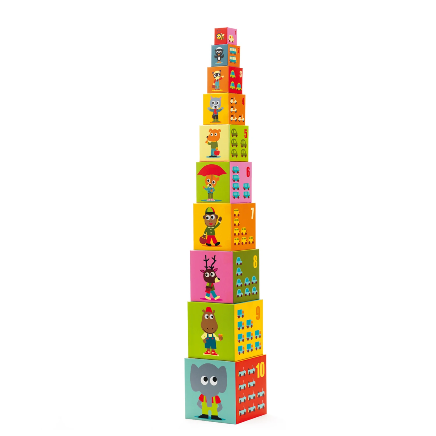 Découvrez cette jolie pyramide de cubes carrés en carton Véhicules de la marque . Merveilleusement illustrés, les 10 cubes gigognes formeront une jolie tour colorée de 86 cm de haut qui permettra à votre enfant de découvrir chiffres, véhicules et animaux… De quoi développer son imagination et sa créativité ! Ce superbe jeu en carton n’a pas fini de surprendre votre petit(e) !