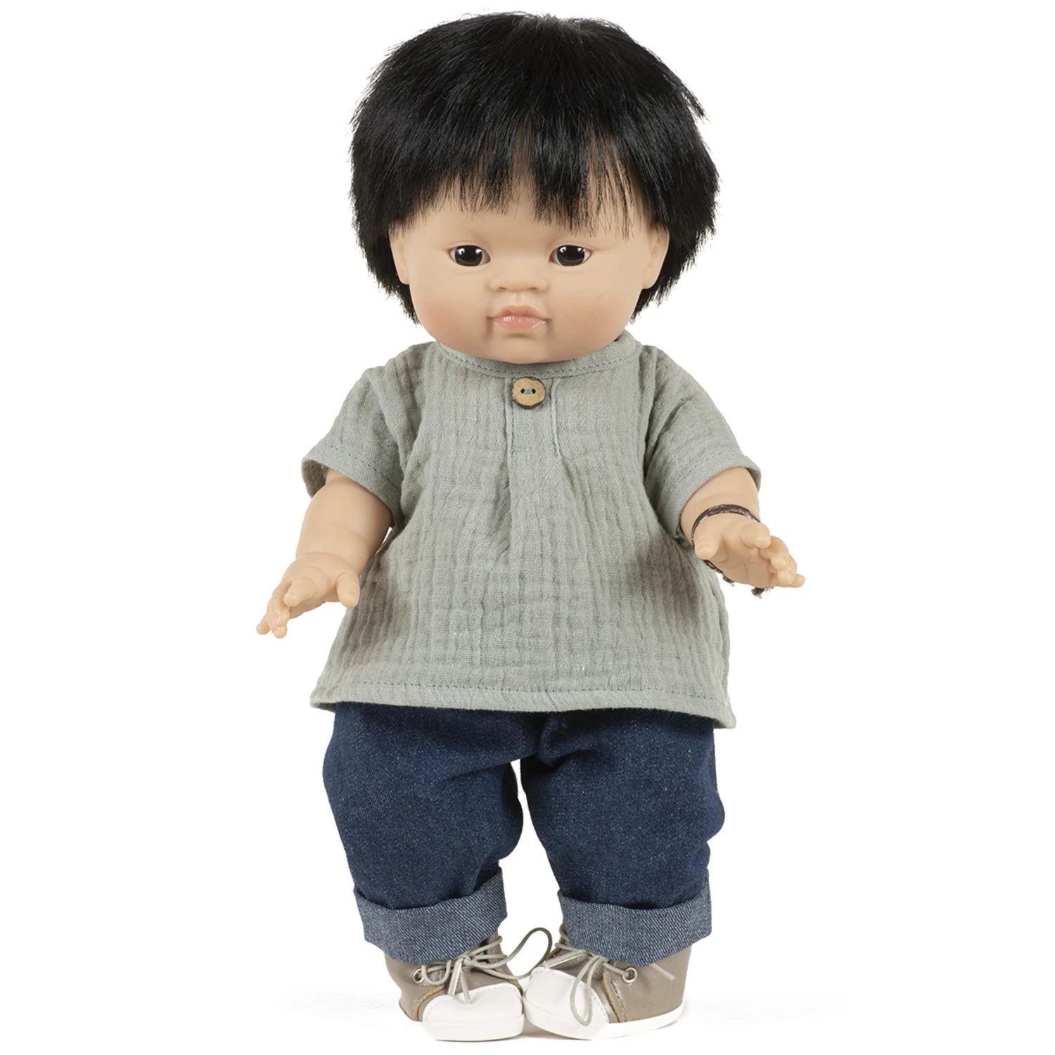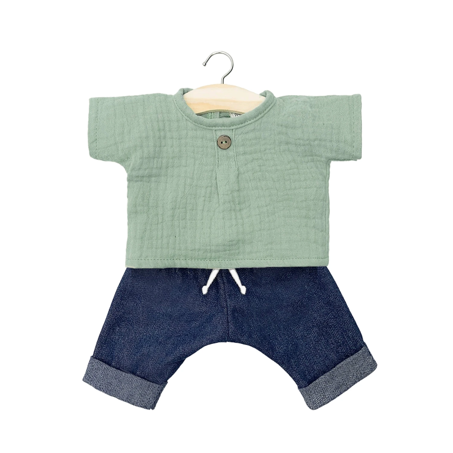 Découvrez le bel ensemble Mao de la marque , spécialement conçu pour les poupées de la marque. Composé d’un haut en gaze de coton et d’un jean, c’est la tenue casual idéale !