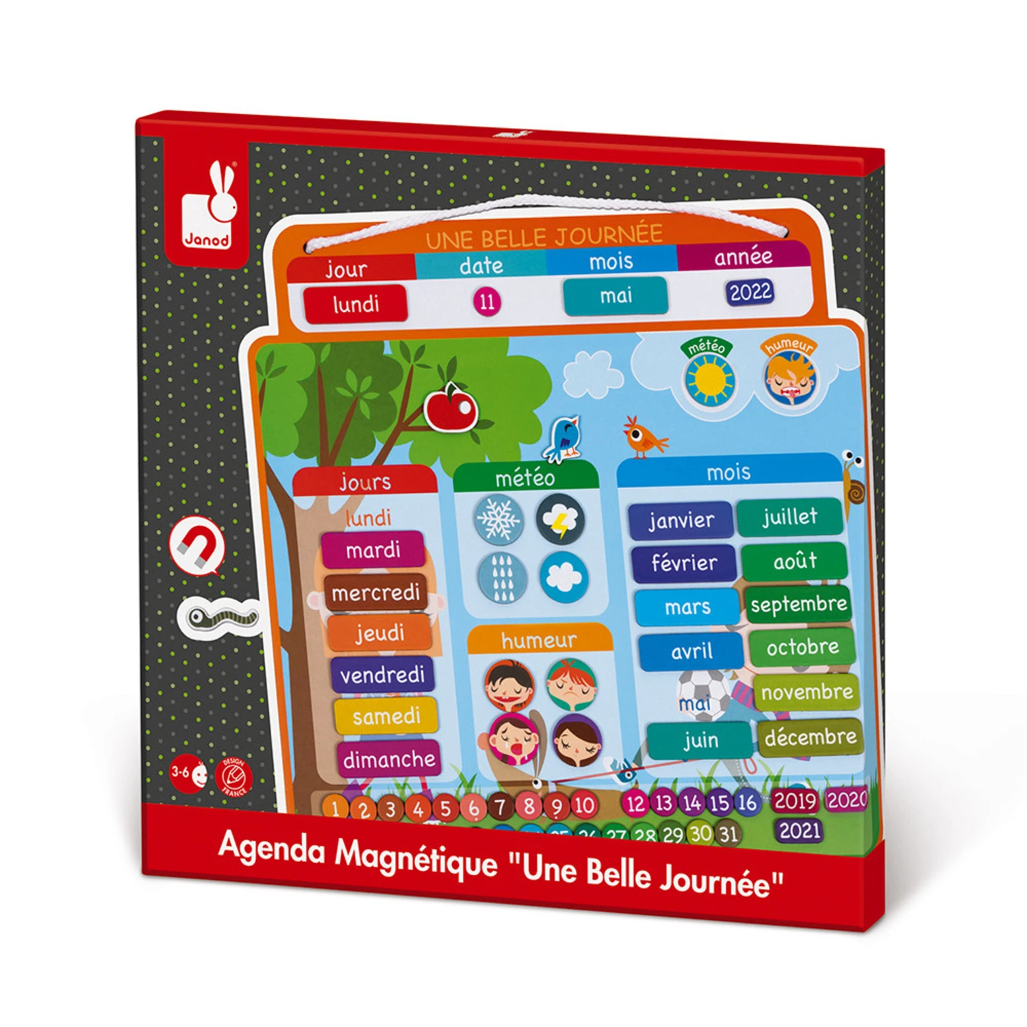 Explorer le temps et ses saisons deviendra un réel plaisir avec ce calendrier magnétique « Une belle journée » de la marque de jouets . Cet agenda accompagnera votre enfant à partir de ses 3 ans et est idéal pour lui apprendre à acquérir la notion du temps tout en devenant autonome ! L’agenda se compose d’un tableau à suspendre et de 67 magnets pour indiquer la date (jour / mois / année), la météo et l’humeur du moment, chaque jour, tout au long de l’année…