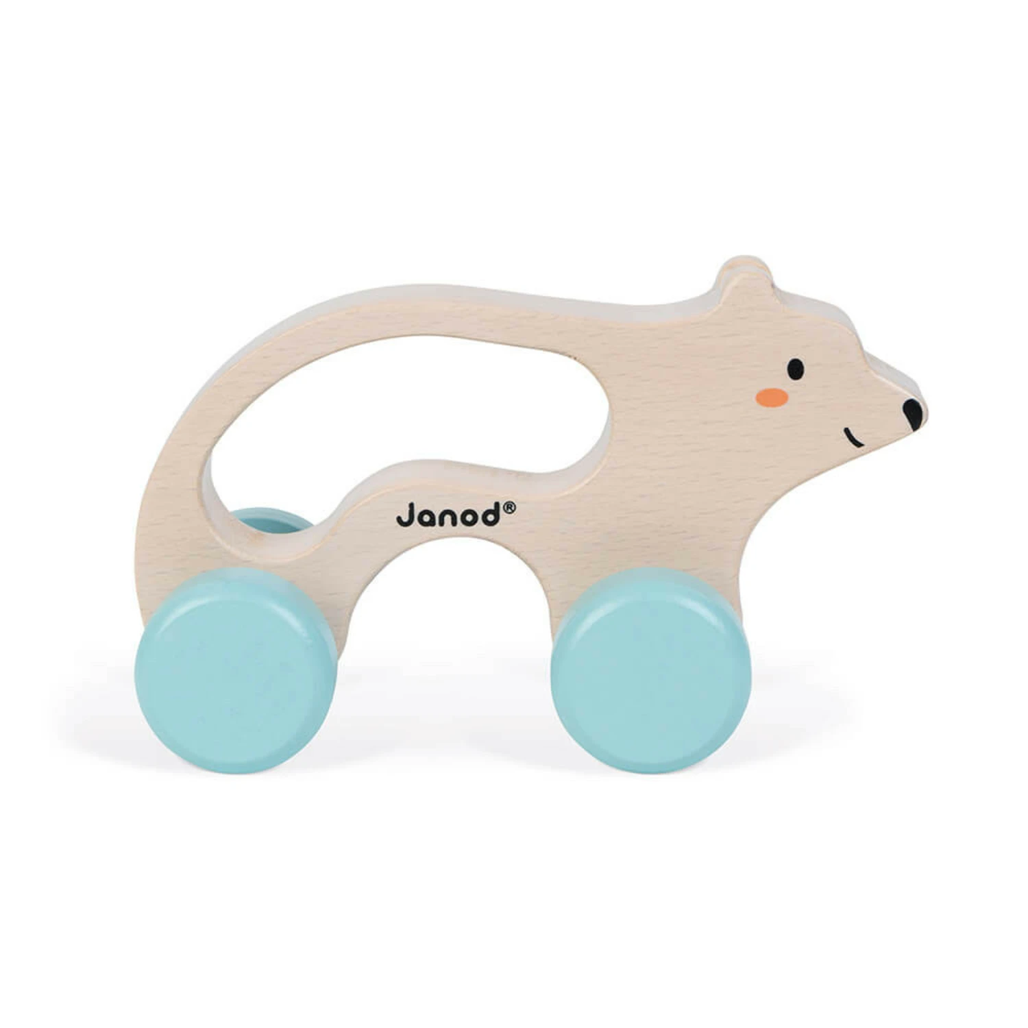 Optez pour ce joli ours polaire en bois à promener de la marque de jouets . Au design rigolo et à la frimousse sympathique, ce petit ours blanc est un merveilleux jouet d’éveil qui aidera votre bébé à développer sa motricité et son imagination… Facile à prendre en main, il ne manquera pas d’éveiller et stimuler les sens de votre enfant ! Il deviendra sans aucun doute un fidèle compagnon pour votre bambin !