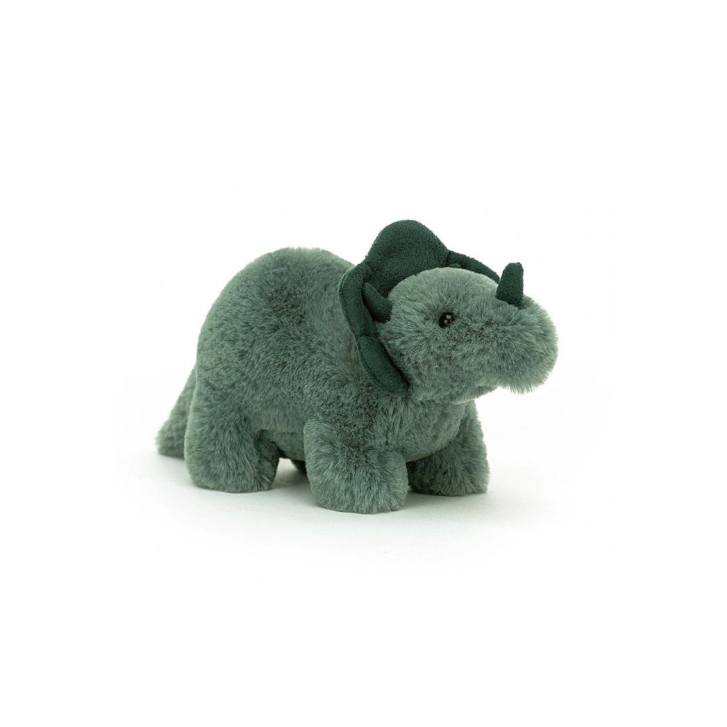 Votre enfant est fan de dinosaures ? Offrez-lui cette belle peluche dino Fossilly Triceratops de la marque au pelage ultra doux et à la couleur vert tendre qui deviendra vite un doudou fidèle et très câlin pour votre tout petit qui l’emportera partout avec lui : à la crèche, en balade, chez mamie… Ce dino Jellycat sera à la fois un compagnon de jeu idéal et une peluche réconfortante pour votre enfant. Avec sa frimousse rigolote et ses minis cornes, ce dino Jellycat deviendra vite l’un des doudous préférés de votre mini et lui apportera plein d’amour et de douceur au quotidien… Il est le compagnon rêvé pour veiller sur bébé et prendre soin de lui !