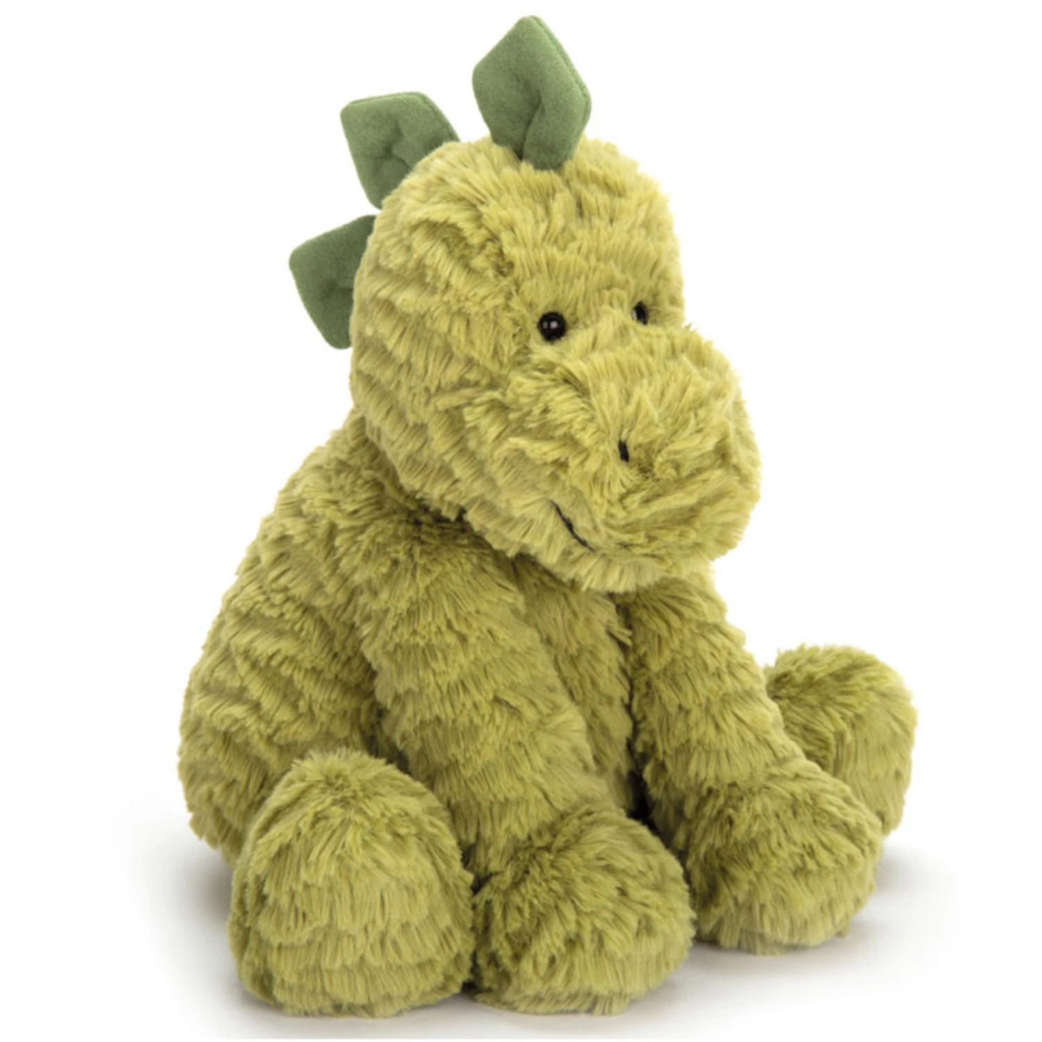 Découvrez la peluche Fuddlewuddle Dino de taille medium de la marque qui deviendra à coup sûr le doudou fétiche de votre enfant ! Avec son pelage ultra doux couleur vert pomme et ses épines moelleuses en guise de crête, ce beau dino Jellycat offrira une sensation de douceur unique à votre mini qui ne voudra plus s’en séparer ! Le Dino Fuddlewuddle est un compagnon préhistorique de choix pour votre tout petit : un ami fidèle et très câlin qui n’attend que les bras de votre enfant…