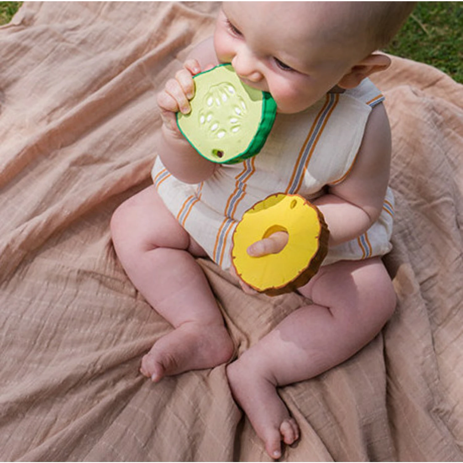 Avec sa forme atypique et ses jolies couleurs, cet ananas souple et flexible ne manquera pas de stimuler les sens de votre enfant, tout en apaisant ses petites gencives douloureuses !