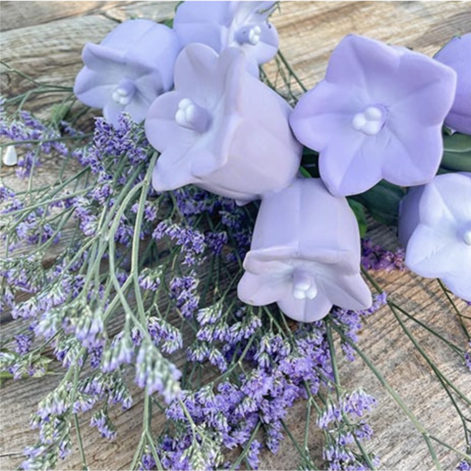 La Campanule Cindy à mordiller de la marque en caoutchouc naturel est un magnifique jouet sensoriel pour bébé, pouvant servir de jouet de dentition et de jeu de bain !