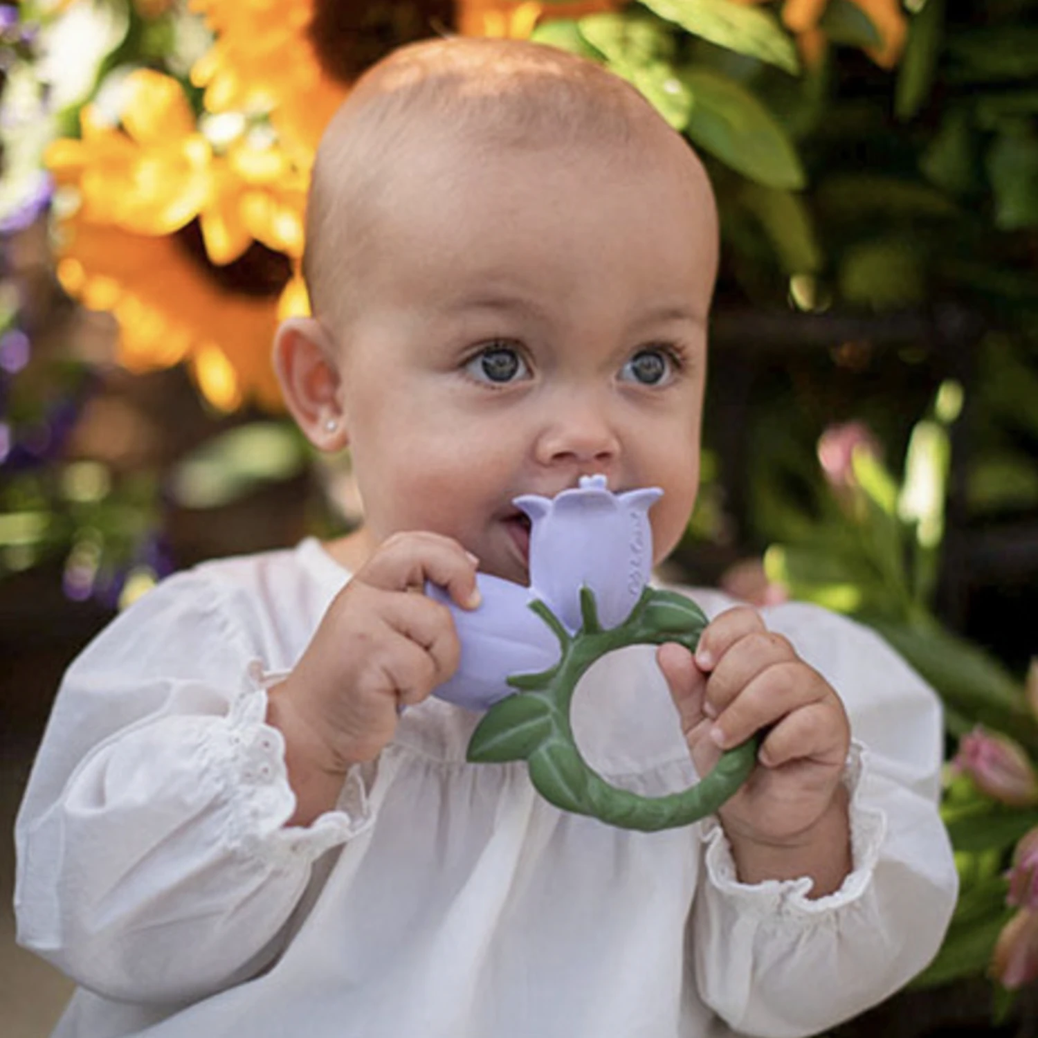 Avec sa forme atypique et ses jolies couleurs, cette belle fleur souple et flexible ne manquera pas de stimuler les sens de votre enfant, tout en apaisant ses petites gencives douloureuses !