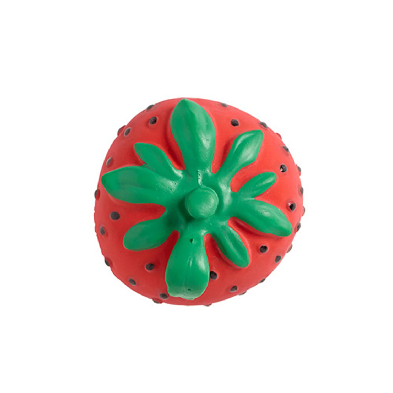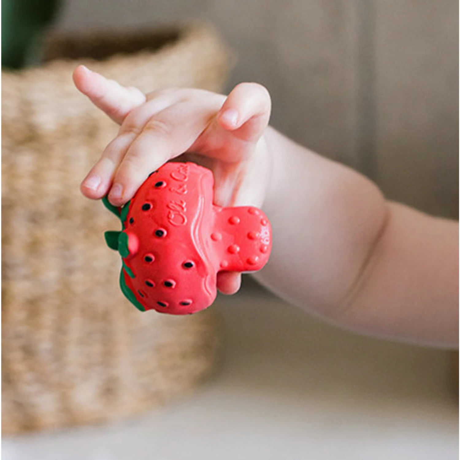La mini Fraise Sweetie à mordiller de la marque en caoutchouc naturel est un magnifique jouet sensoriel pour bébé, pouvant servir de jouet de dentition et de jeu de bain !