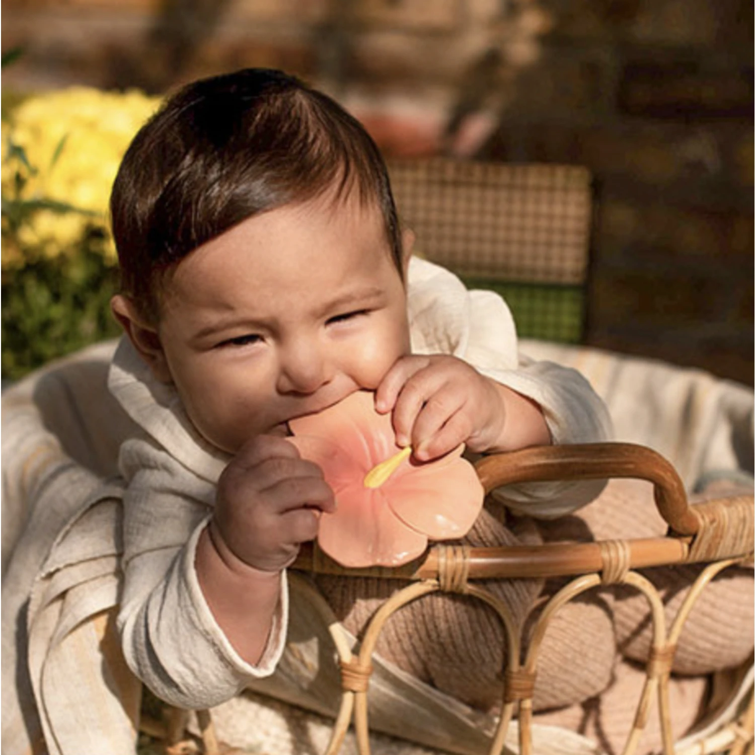 Avec sa forme réaliste et sa jolie couleur, cette belle fleur souple et flexible ne manquera pas de stimuler les sens de votre enfant, tout en apaisant ses petites gencives douloureuses !