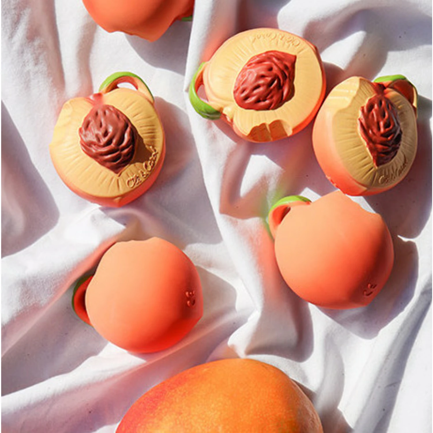La Pêche Palm à mordiller de la marque en caoutchouc naturel est un magnifique jouet sensoriel pour bébé, pouvant servir de jouet de dentition et de jeu de bain !