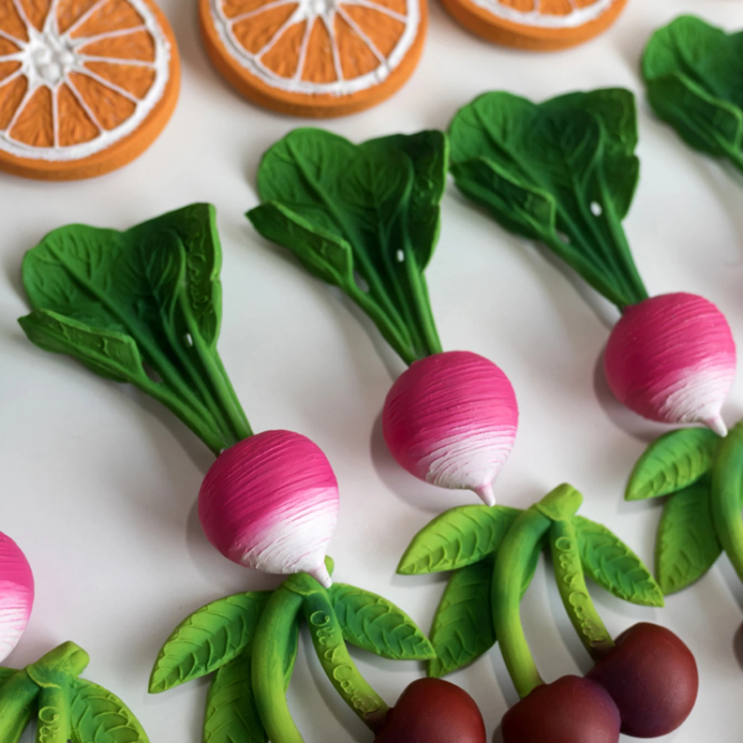 Le Radis Ramona à mordiller de la marque en caoutchouc naturel est un magnifique jouet sensoriel pour bébé, pouvant servir de jouet de dentition et de jeu de bain !