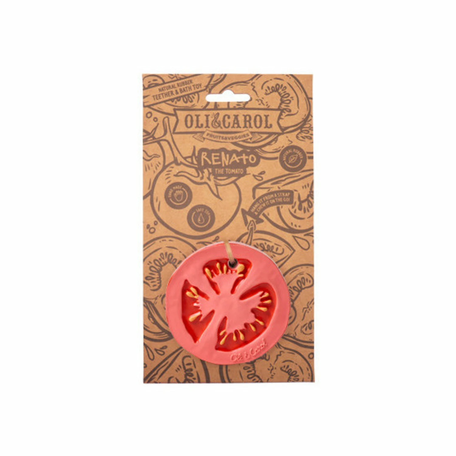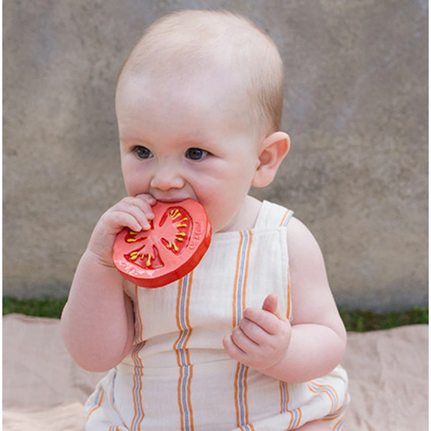 La Tomate Renato à mordiller de la marque en caoutchouc naturel est un magnifique jouet sensoriel pour bébé, pouvant servir de jouet de dentition et de jeu de bain !