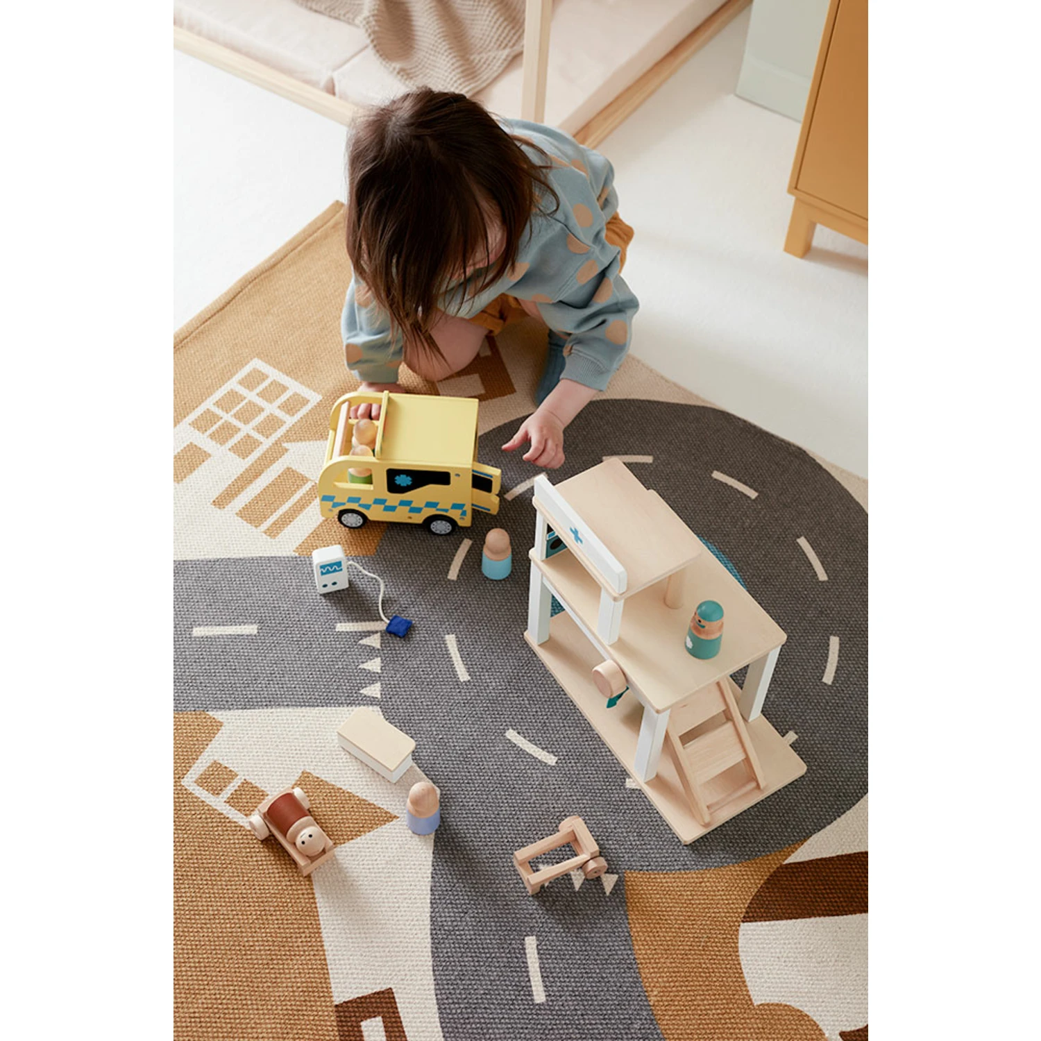 Pin-pon, pin-pon ! Découvrez l’ambulance Aiden en bois de la marque scandinave , un jouet en bois à la fois ludique et design qui aidera votre enfant à développer sa motricité et son imagination… Cette belle ambulance jaune dispose de 2 infirmières, un patient et une civière. Le brancard se place dans les rainures situées à l’intérieur de l’ambulance et les portes arrière s’ouvrent.