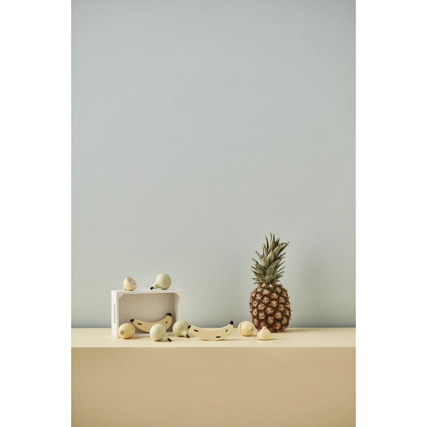 Découvrez cette jolie boîte de fruits mixtes en bois de la marque suédoise . Idéale pour jouer à la marchande ou au chef cuisinier ! Cette boîte contient 13 pièces : banane, kiwi, fraise, pomme, poire, orange… De quoi ravir petits et grands qui s’amuseront des heures à cuisiner de bons petits plats comme des grands chefs ! L’orange et le kiwi se divisent en deux morceaux et se reforment grâce à des attaches scratch.