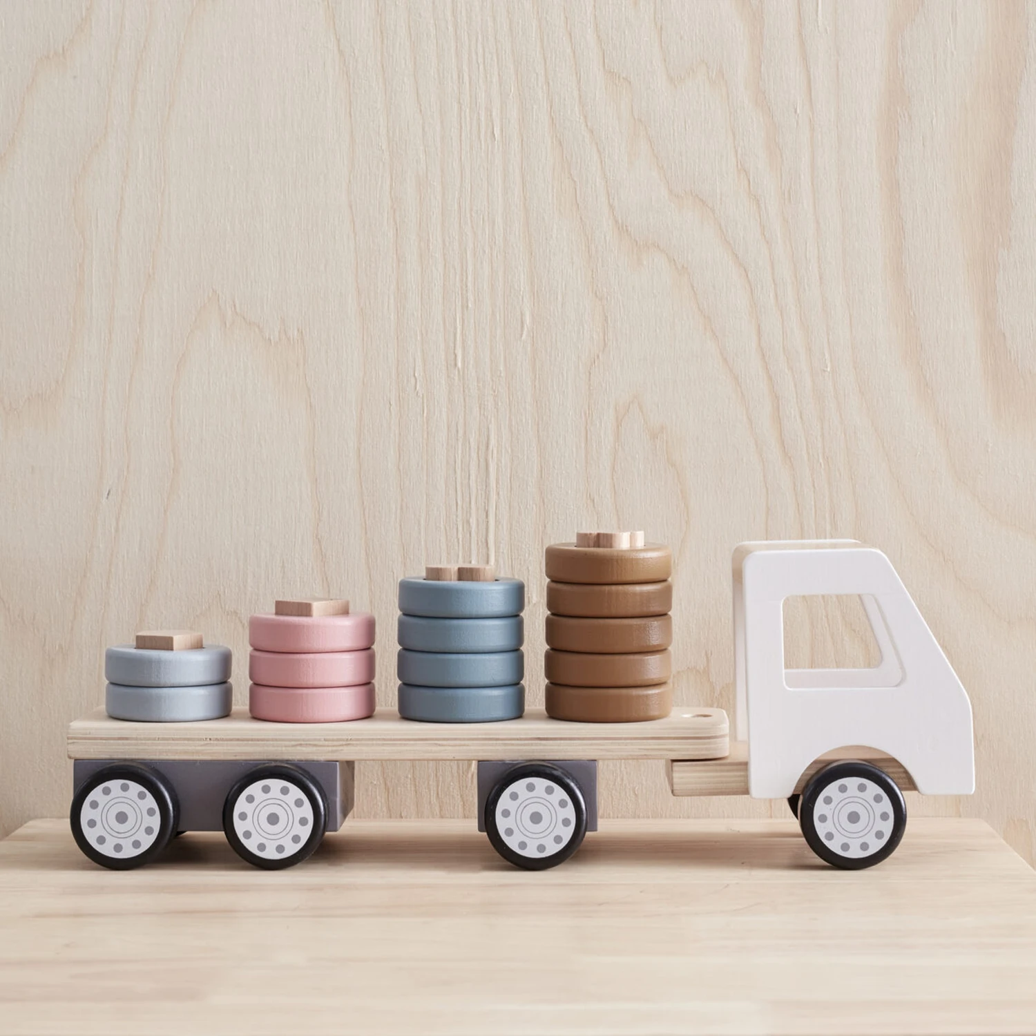 Joli camion à anneaux de tri Aiden en bois de la marque scandinave de . Jouet en bois à la fois ludique et design, ce petit camion aidera votre enfant à développer sa motricité et son imagination… Ce camion de tri dispose d’une remorque comportant 4 goupilles de formes différentes sur lesquelles votre enfant pourra empiler les anneaux de différentes tailles et combinaisons… Beau jouet en bois durable qui aiguisera la pensée logique, la précision et la vision des couleurs des votre enfant !