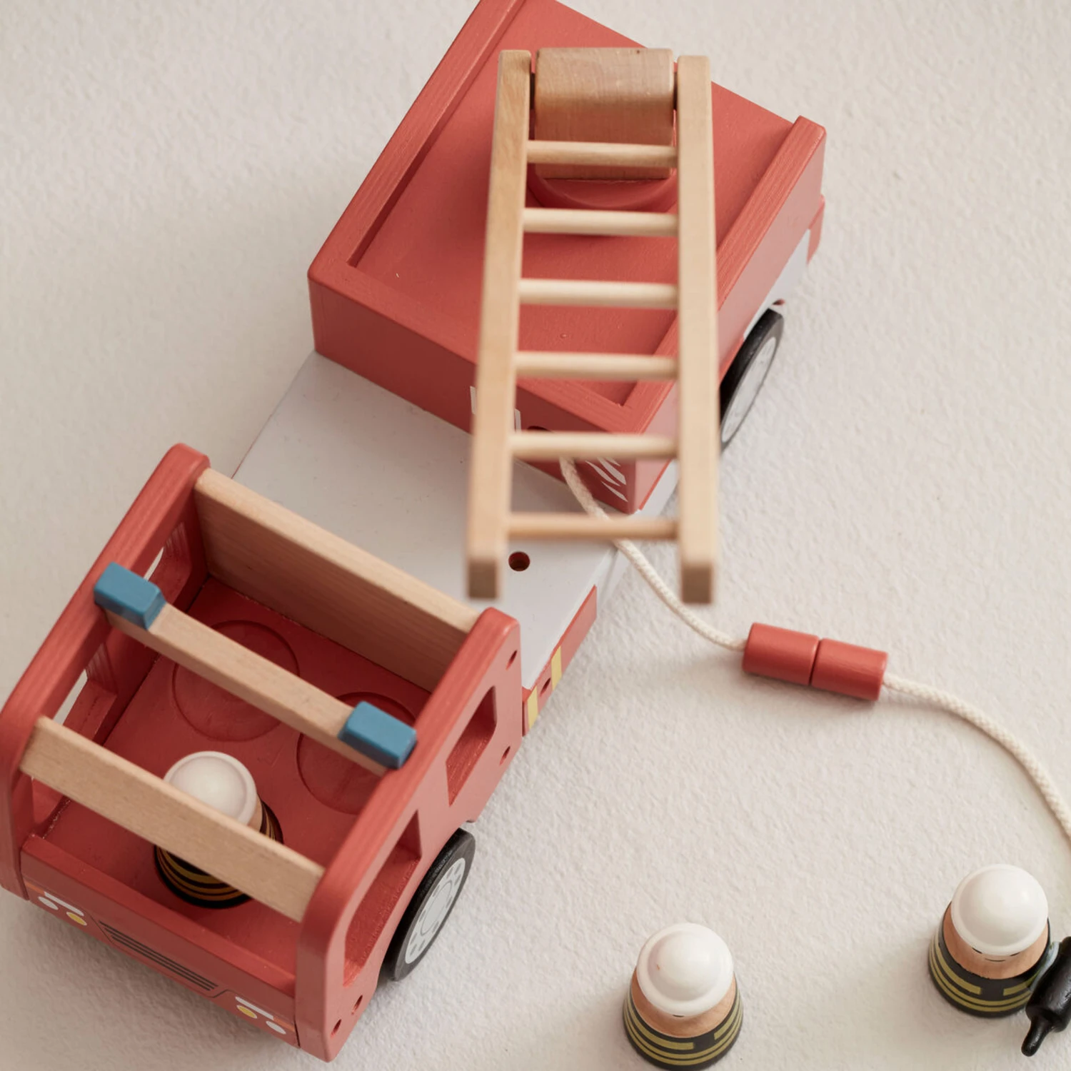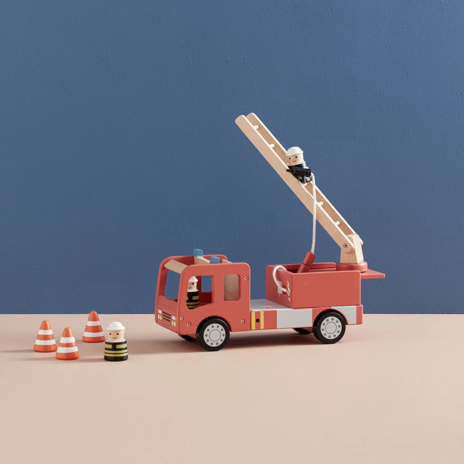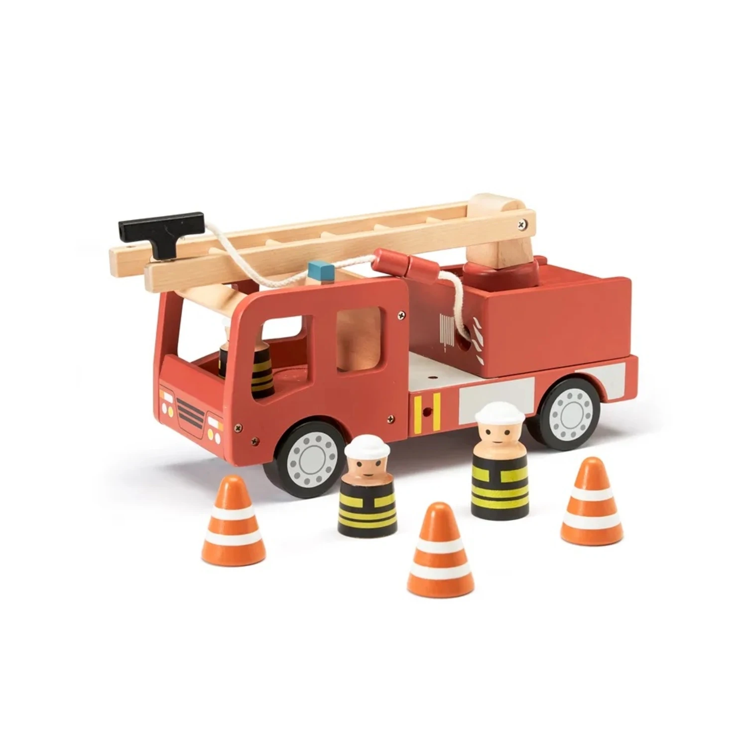 Joli camion de pompier Aiden en bois de la marque scandinave . Jouet en bois à la fois ludique et design, ce petit camion aidera votre enfant à développer sa motricité et son imagination… Ce camion de pompier dispose d’une lance à incendie et d’une grande échelle qui se tourne, mais aussi de 3 cônes pour baliser la route.