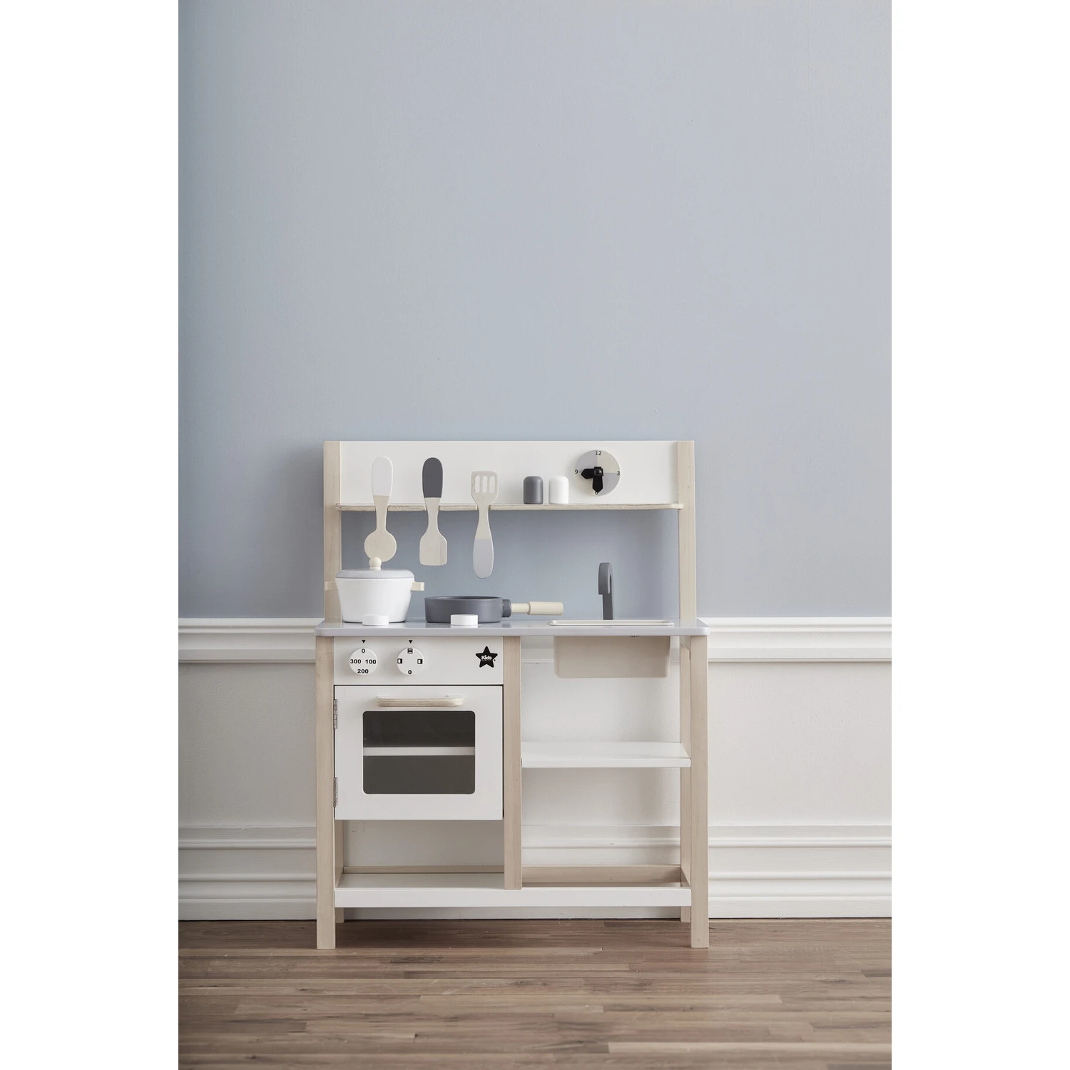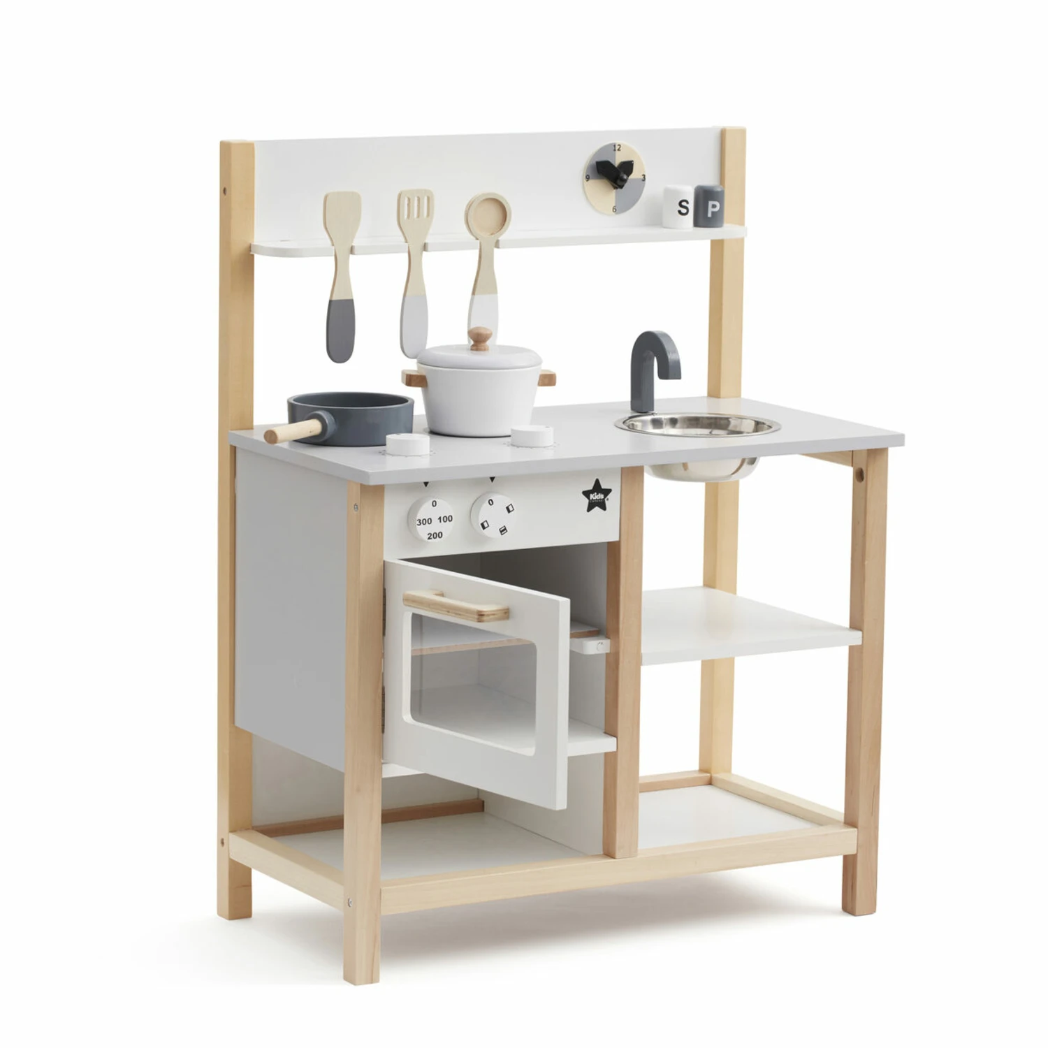 Découvrez la grande cuisine Bistro en bois de la marque scandinave ! Au design épuré et élégant, cette jolie cuisine ravira petits et grands enfants ! Plus vraie que nature, cette cuisine en bois comporte : 2 boutons rotatifs, 1 four, 1 placard avec portes magnétiques, 1 évier et 1 horloge.