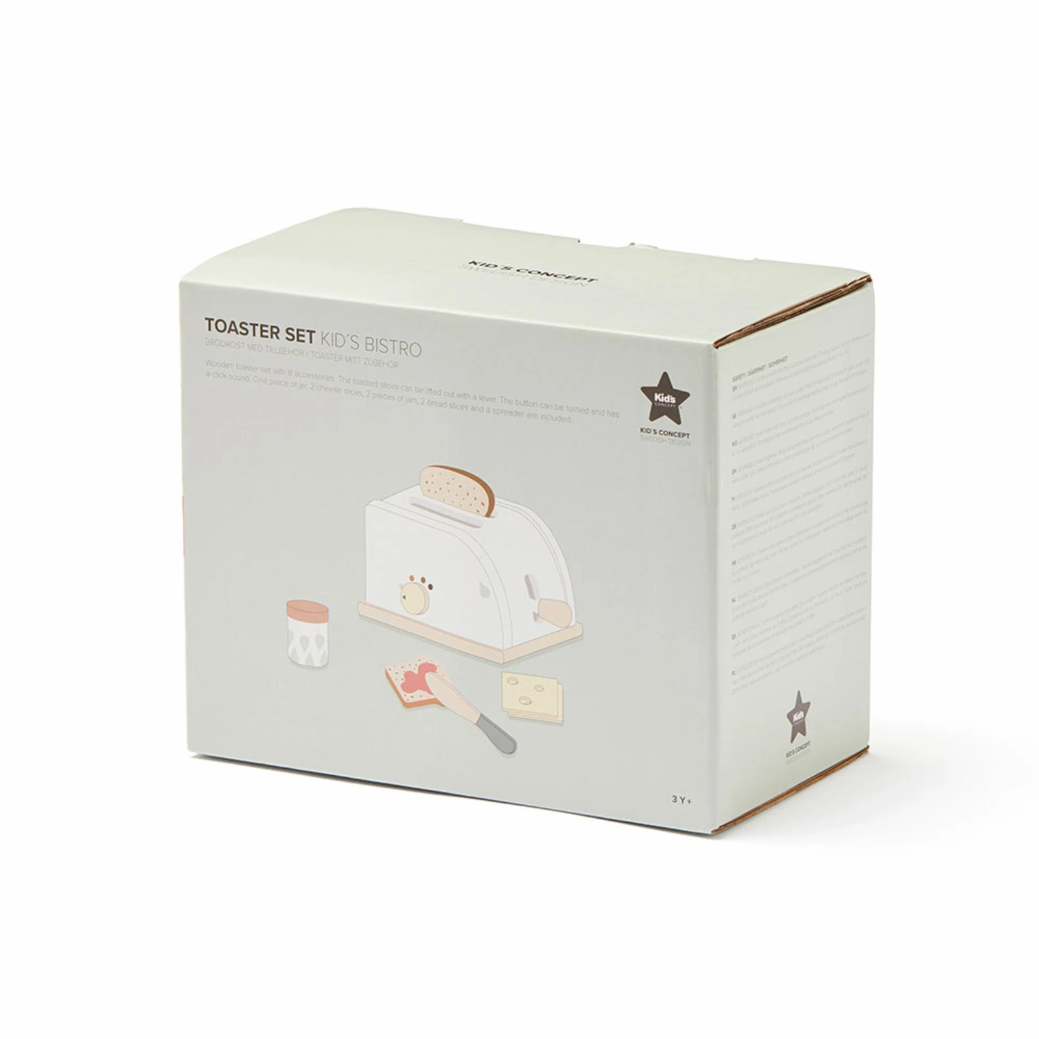 Découvrez le joli grille-pain Bistro en bois de la marque ! Vos enfants s’amuseront à vous préparer le petit déjeuner ! L’ensemble comprend 8 accessoires : un pot de confiture, 2 tranches de pain, 2 tranches de fromage, 2 morceaux de confiture et 1 couteau à tartiner. Utilisez le levier pour sortir les tranches grillées et pour régler la chaleur, il vous suffit de tourner le bouton.