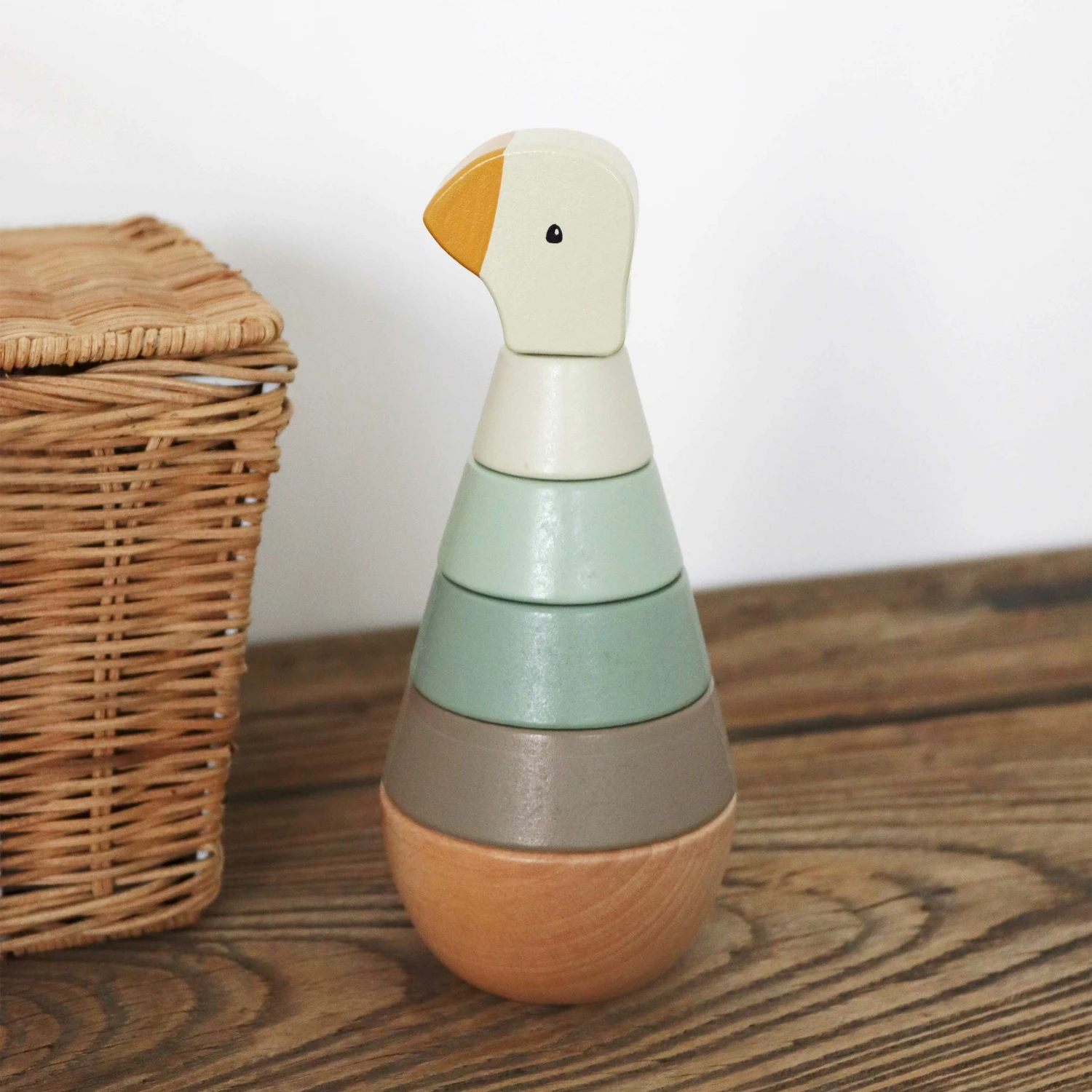 Une tour d’anneaux à empiler Little Goose en bois de la marque qui amusera bébé tout en favorisant sa coordination main-œil. Votre enfant devra empiler les anneaux du plus grand au plus petit pour reconstituer la pyramide et découvrir l’oie Little Goose au sommet !