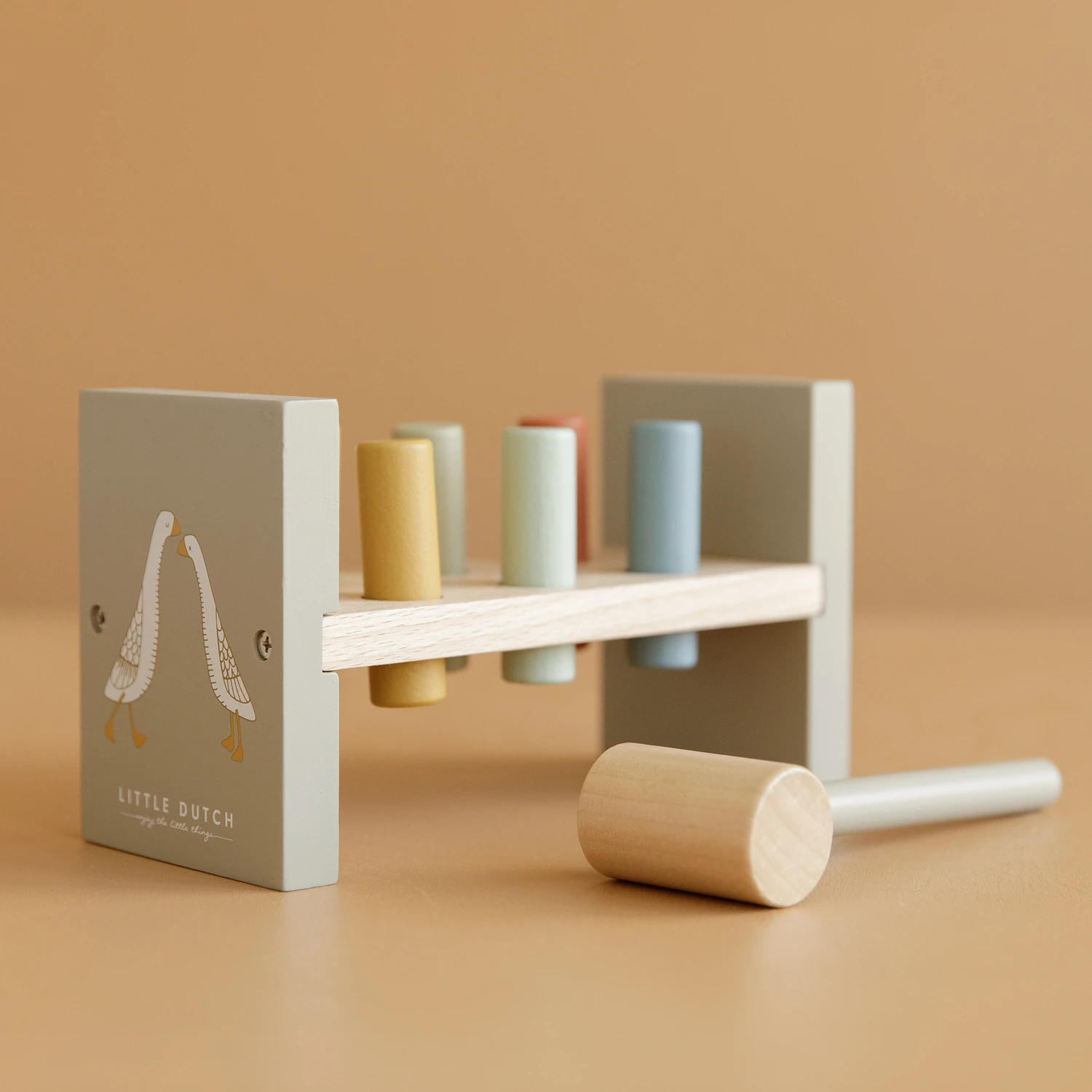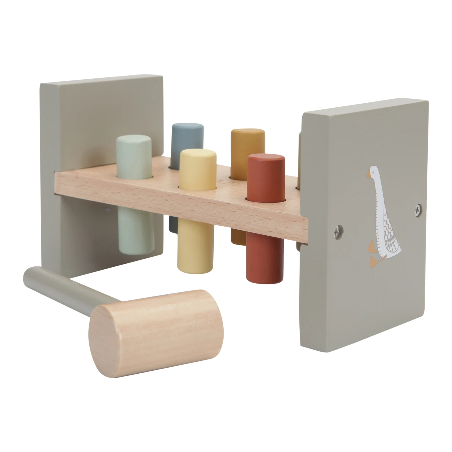 Toc, toc, toc ! Découvrez le banc à marteler en bois Little Goose de la marque scandinave , entièrement fabriqué en bois naturel et peint à l’eau. Ce beau sera une excellente activité éducative et divertissante pour votre tout petit ! Le but du jeu ? Taper avec le marteau pour enfoncer les 6 bâtonnets dans l’établi, un bon exercice pour développer la motricité de votre enfant. Le banc se compose de 6 chevilles colorées et d’un marteau.