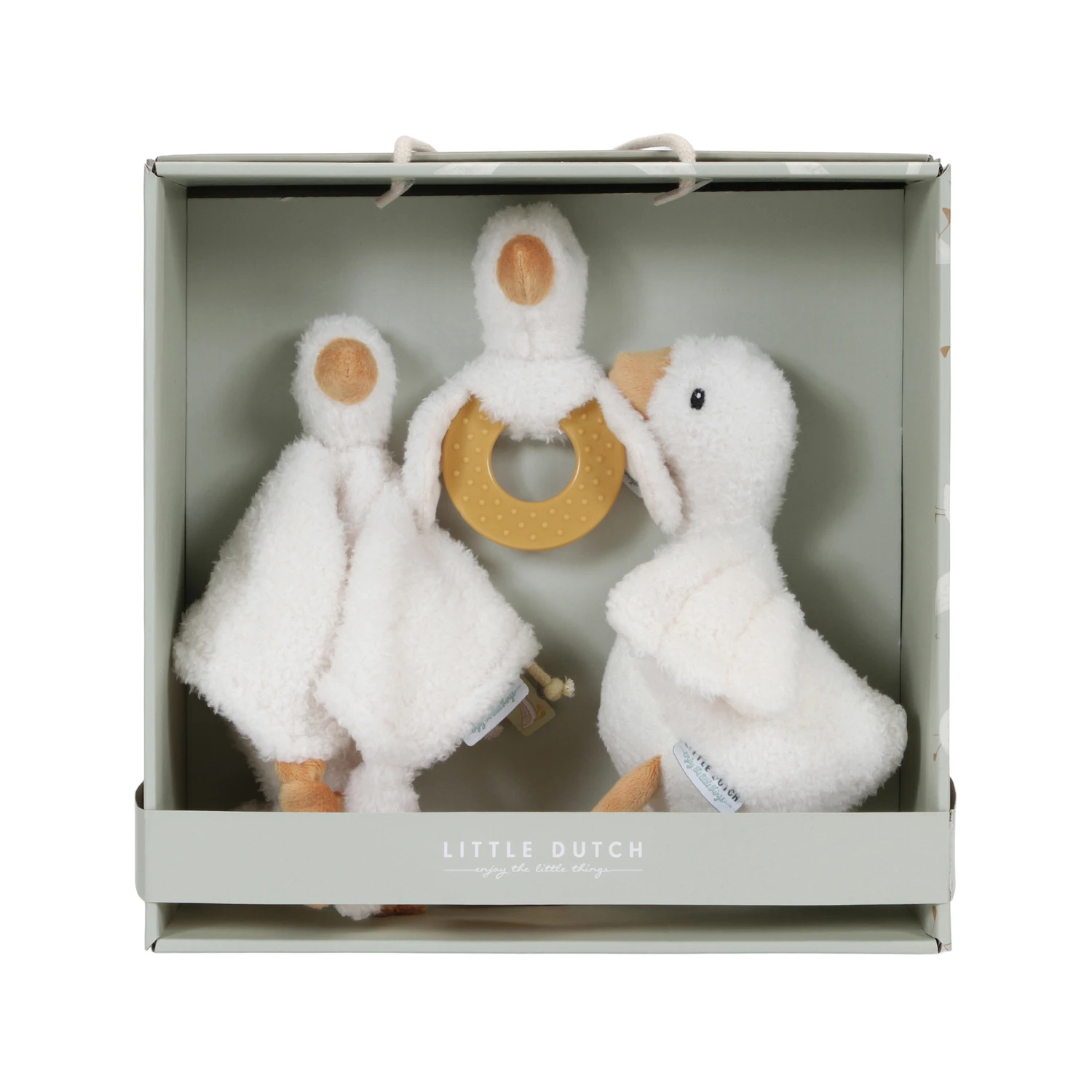 À la recherche d’un cadeau de naissance original ? Craquez pour le coffret de naissance Little Goose de la marque , une merveilleuse attention à offrir lors d’une naissance… Le coffret se compose des produits phares de la marque, à savoir la petite peluche et le doudou lange Little Goose, assortis au hochet sonore et mordillable de la même collection. Ultra douces, ces petites oies seront parfaites pour endormir bébé, le câliner, le réconforter… L’ensemble est délicatement emballé dans une jolie boîte cadeau, idéal à offrir donc !