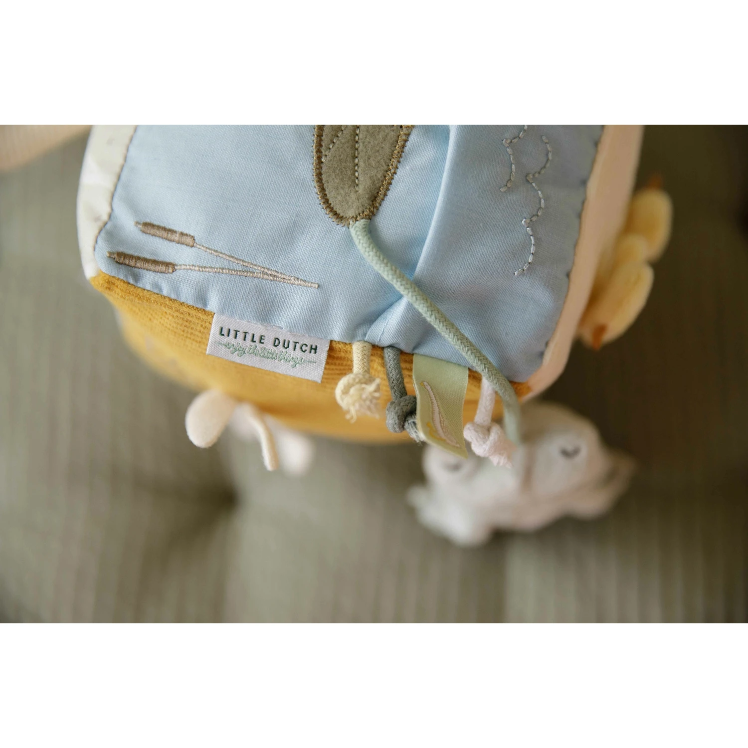 Un beau cube d’activités Little Goose de la marque pour éveiller et divertir bébé ! Ce cube en tissu offrira de nombreuses activités à votre enfant : miroir, anneau de dentition, mélange de textures… Amusement garanti !
