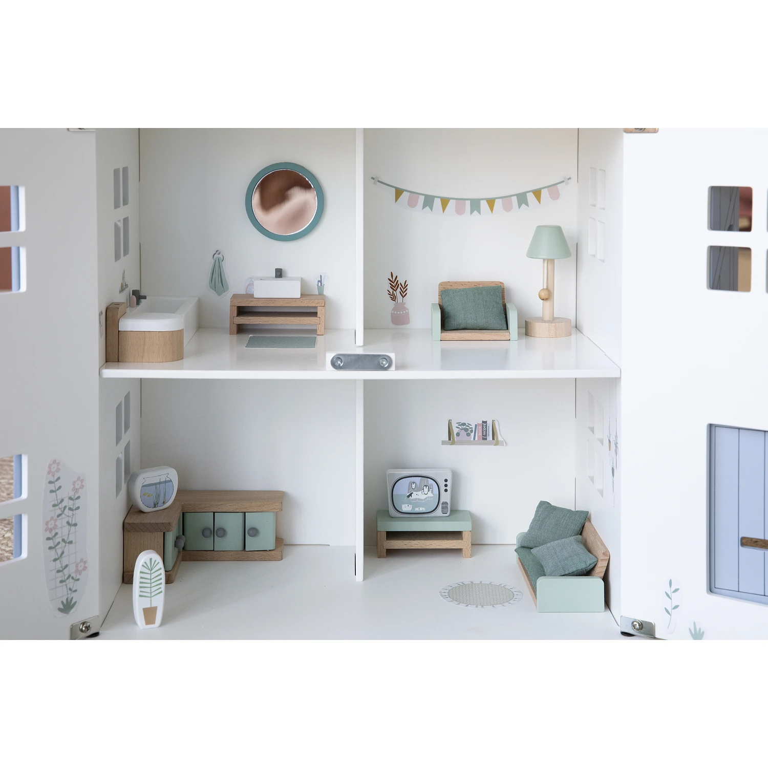 Attention : la maison de poupée en bois Little Dutch ne convient pas aux enfants de moins de 3 ans car risque d’absorption des petits éléments…