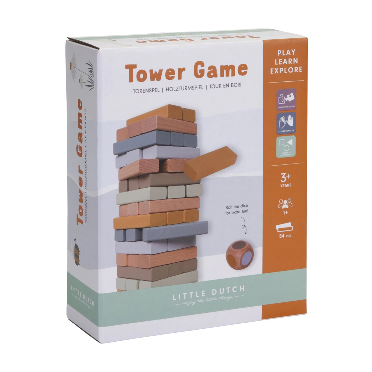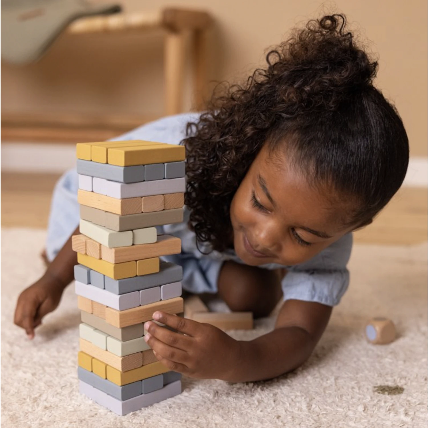 Le but du jeu ? Construire une tour en empilant tous les blocs de bois les uns sur les autres. Puis, retirer à tour de rôle un bloc de la tour et le placer au sommet. Mais attention, si la tour s’effondre, le jeu est terminé !