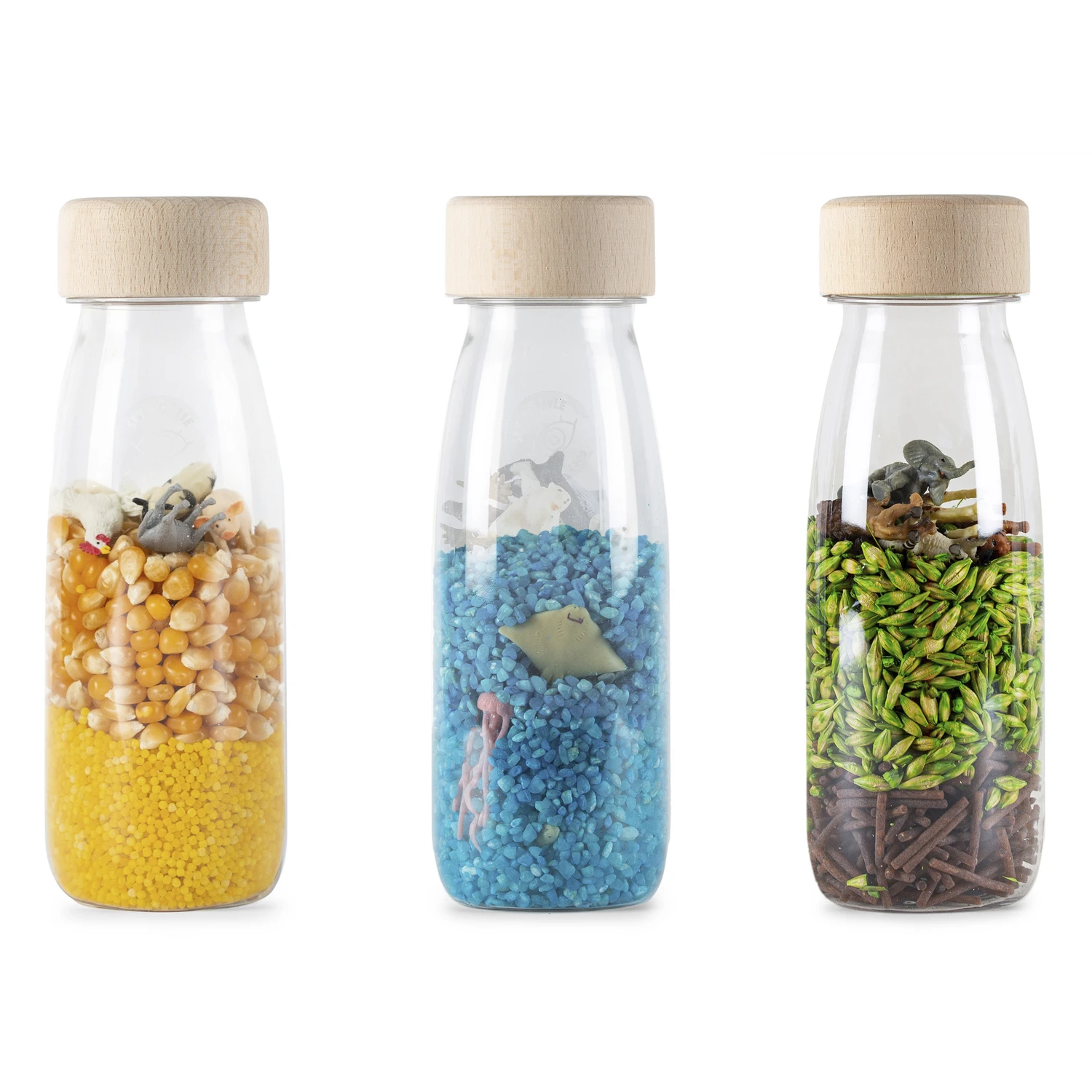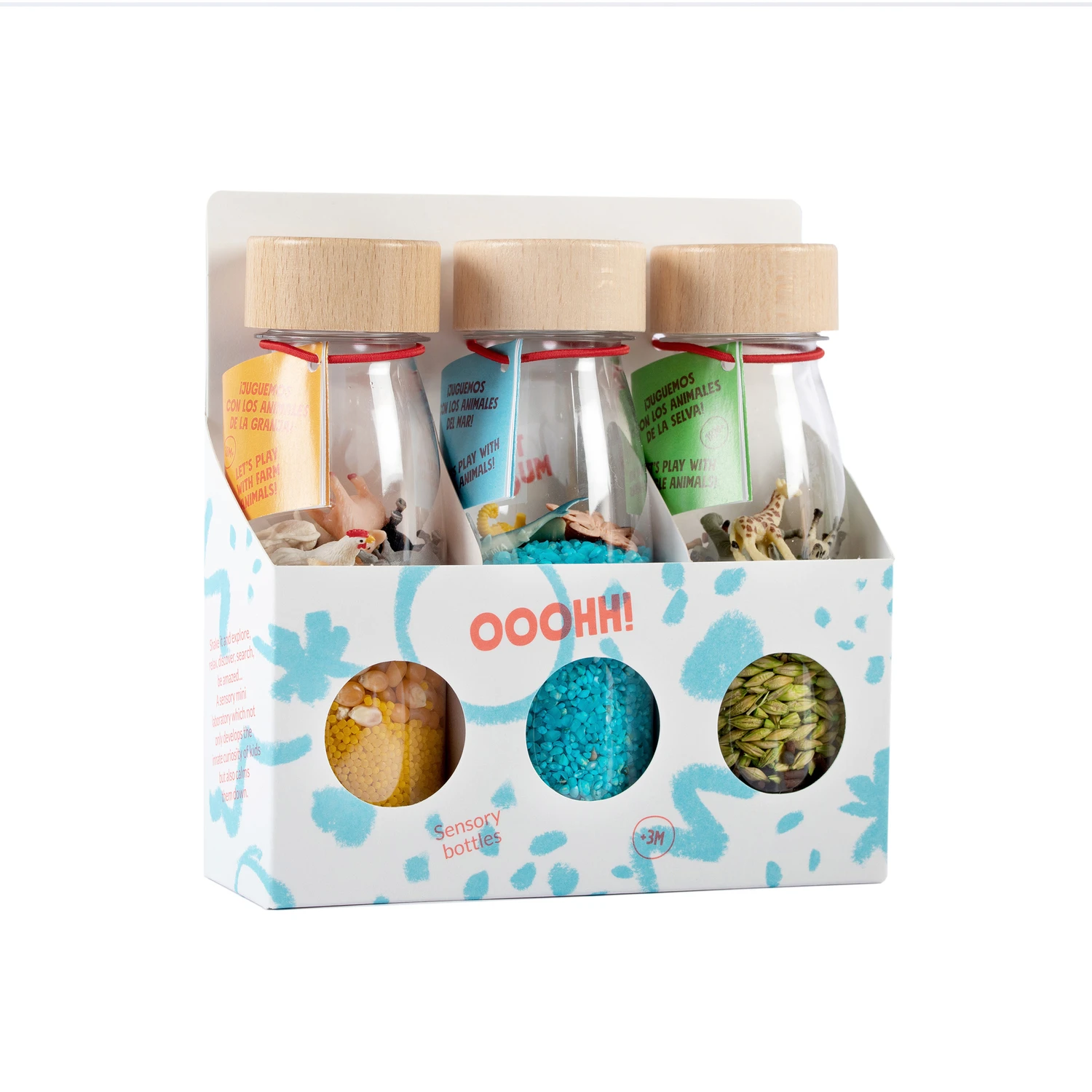 Optez pour le pack de 3 bouteilles sensorielles Nature de la marque , des petites bouteilles d’Ă©veil Ă contempler et Ă Ă©couter sans modĂ©ration pour dĂ©velopper ses sens, son imagination et sa crĂ©ativitĂ© dès 18 mois ! Les petites figurines contenues Ă l’intĂ©rieur des bouteilles ne manqueront pas de dĂ©velopper l’imaginaire de vos enfants qui s’amuseront Ă inventer de jolies histoires…