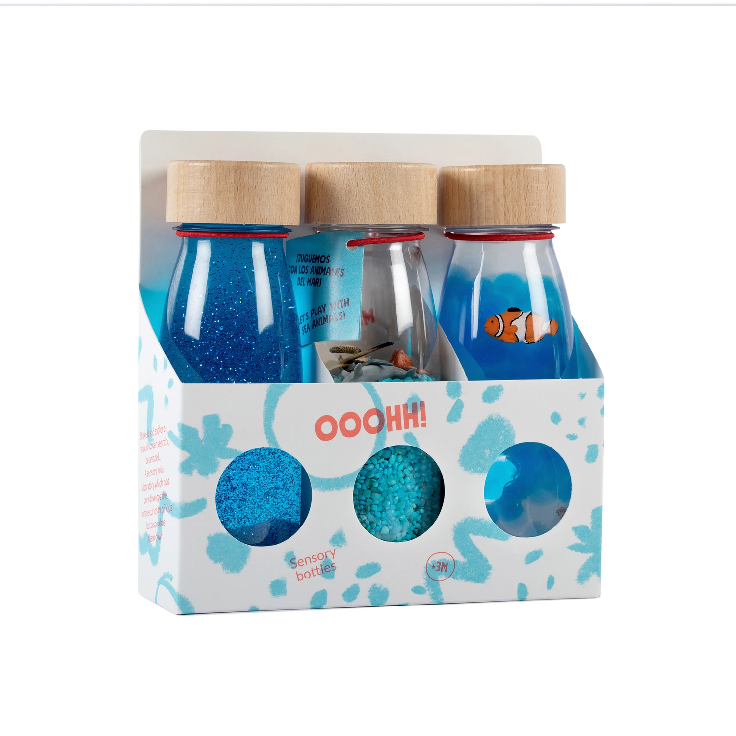 Optez pour le pack de 3 bouteilles sensorielles Serenity de la marque , des petites bouteilles d’éveil à contempler et à écouter sans modération pour développer ses sens, son imagination et sa créativité dès 18 mois ! Les petites figurines contenues à l’intérieur des bouteilles ne manqueront pas de développer l’imaginaire de vos enfants qui s’amuseront à inventer de jolies histoires…