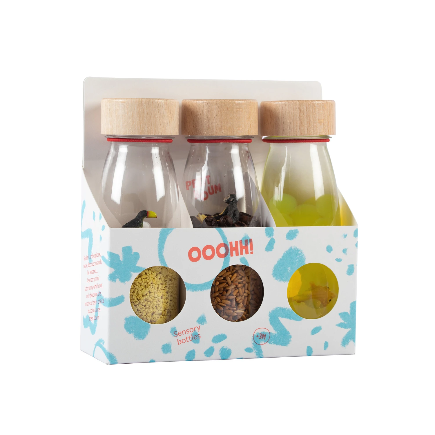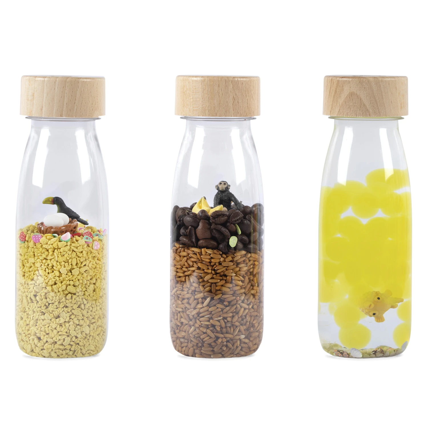 Optez pour le pack de 3 bouteilles sensorielles Tropical de la marque , des petites bouteilles d’éveil à contempler et à écouter sans modération pour développer ses sens, son imagination et sa créativité dès 18 mois ! Les petites figurines contenues à l’intérieur des bouteilles ne manqueront pas de développer l’imaginaire de vos enfants qui s’amuseront à inventer de jolies histoires…