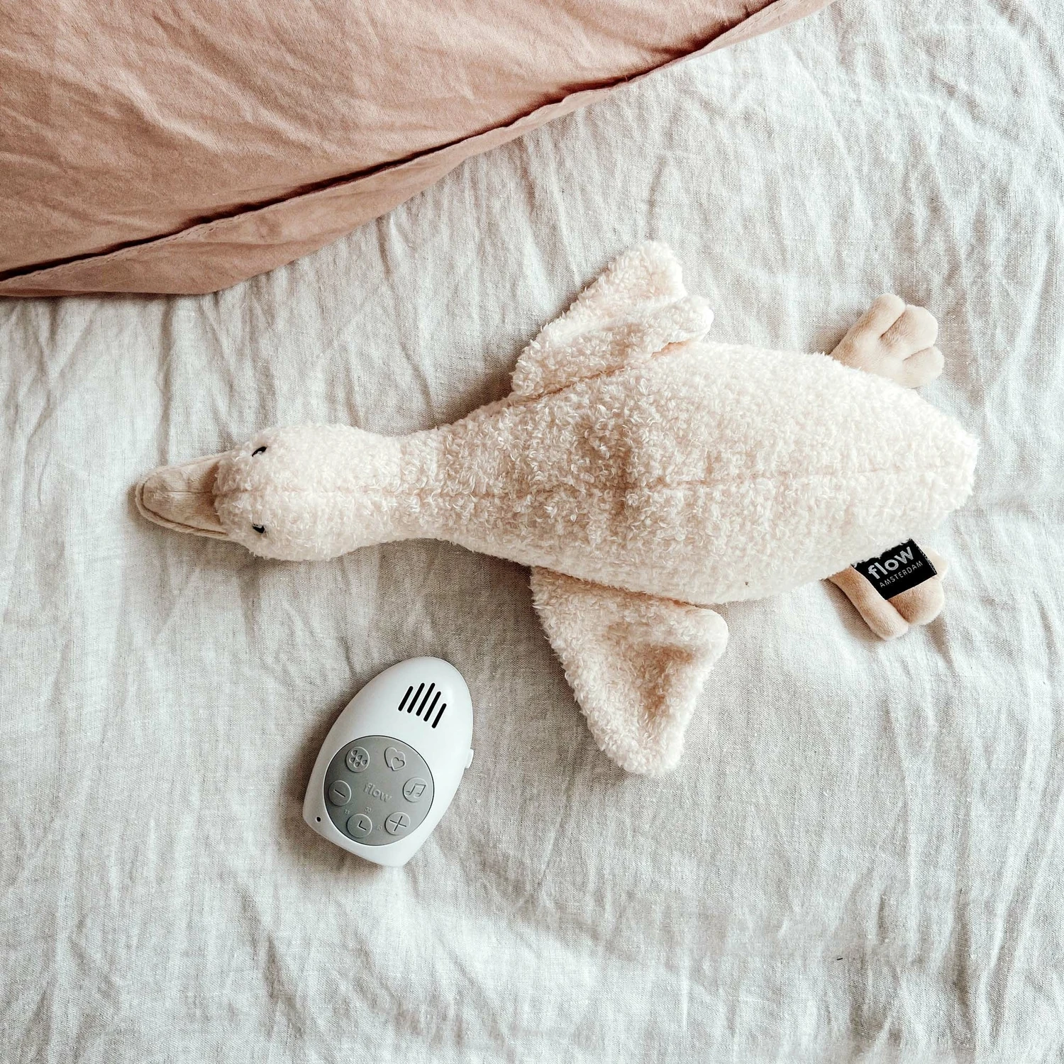 Une peluche en forme d’oie qui produit des bruits blancs pour rassurer et câliner votre tout petit de jour comme de nuit…