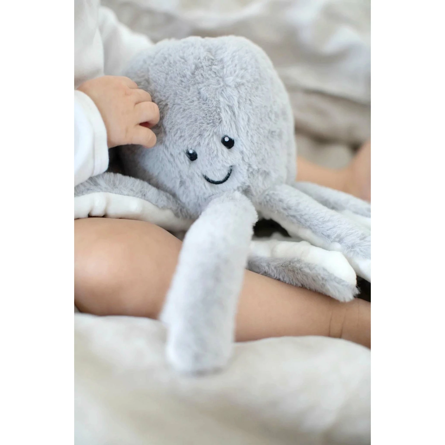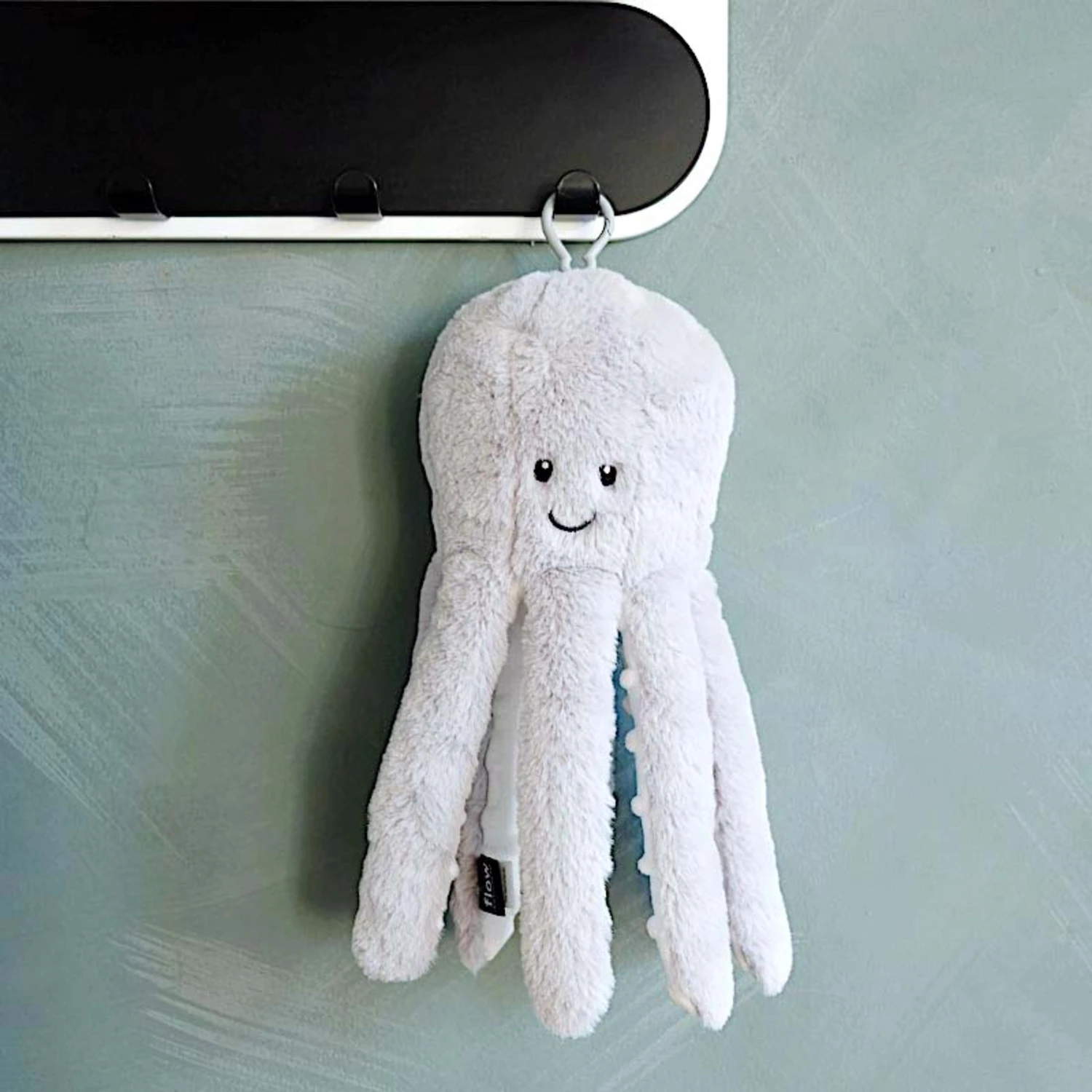 Une peluche en forme de pieuvre qui produit des bruits blancs pour rassurer et câliner votre tout petit de jour comme de nuit…