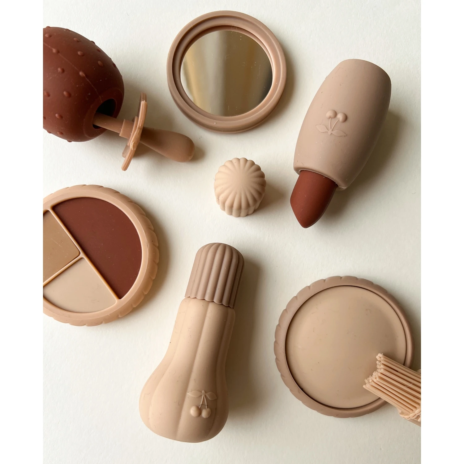 Avec ce joli set de maquillage en silicone de la marque scandinave votre petit fera tout comme un grand ! Le set comprend 6 accessoires : 1 miroir, 1 rouge à lèvres, 1 parfum, 1 blush, 1 fard à paupières et 1 vernis.